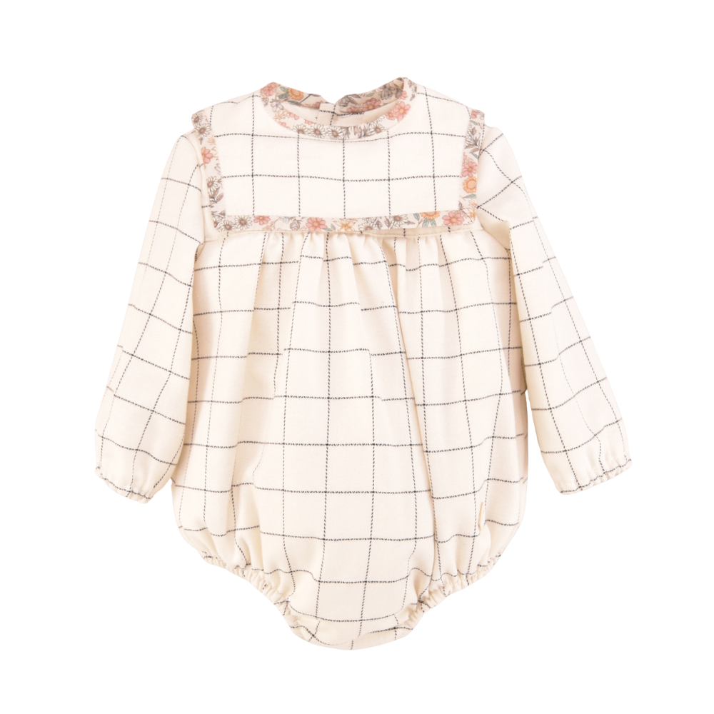 Conjunto malha bege ursinho com camisola branca para bebé - Juliana