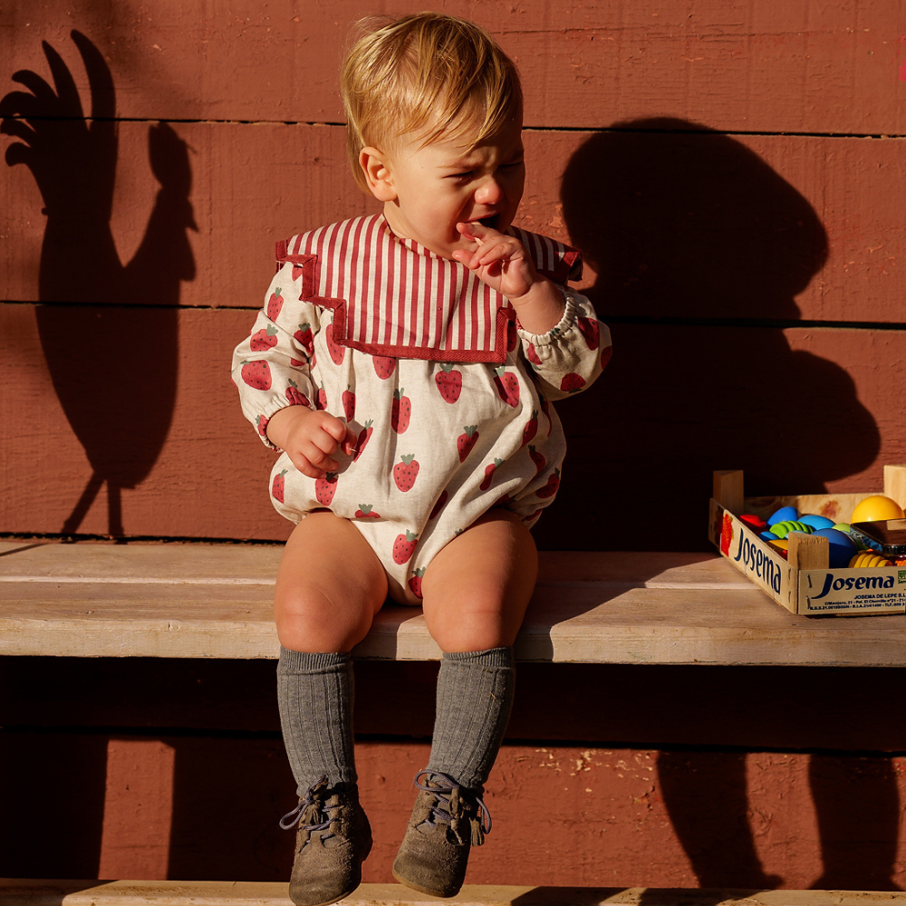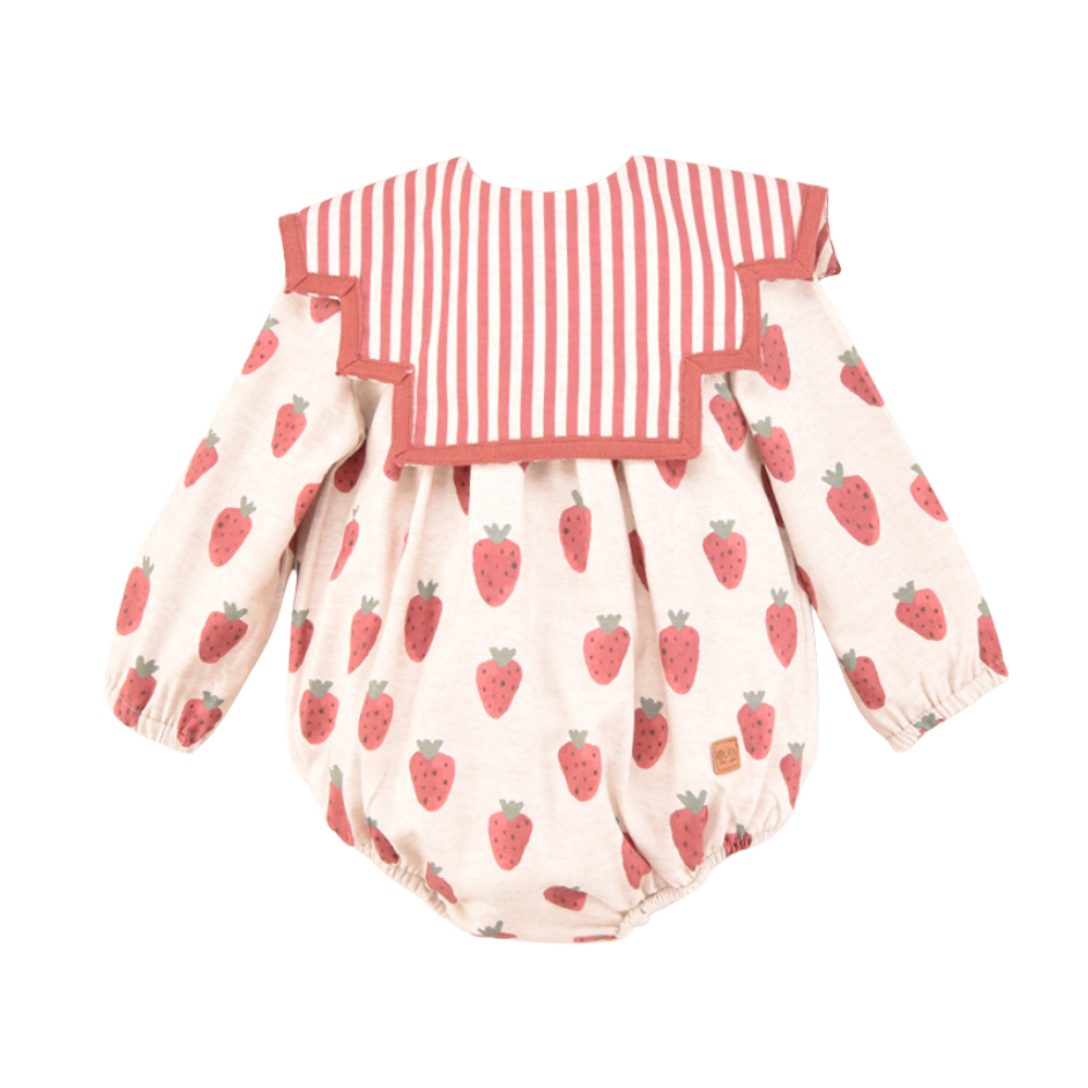 Fofo bebé morangos com gola removível riscas vermelhas - José Varón
