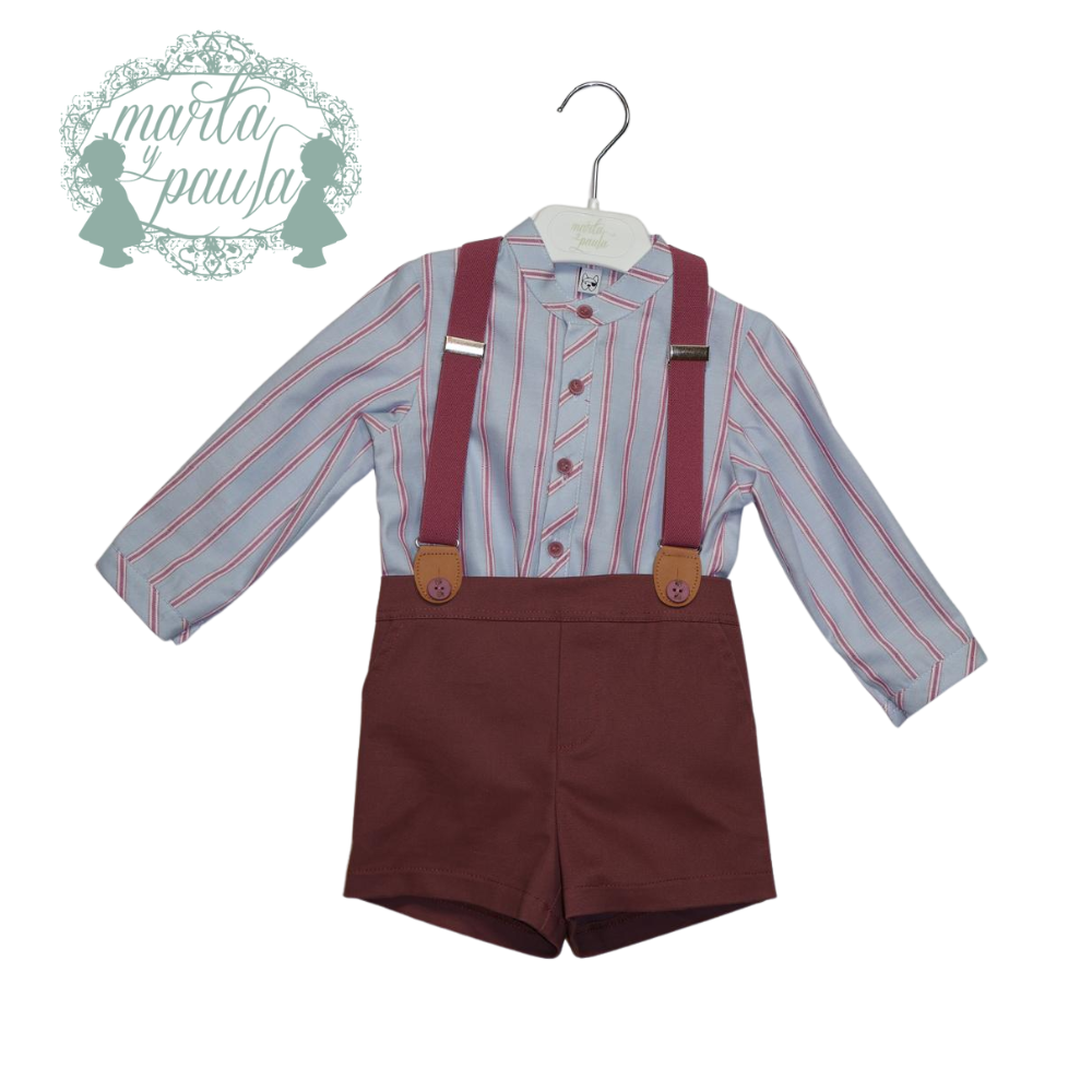 Conjunto bebé menino riscas com calções e suspensórios -Marta y Paula