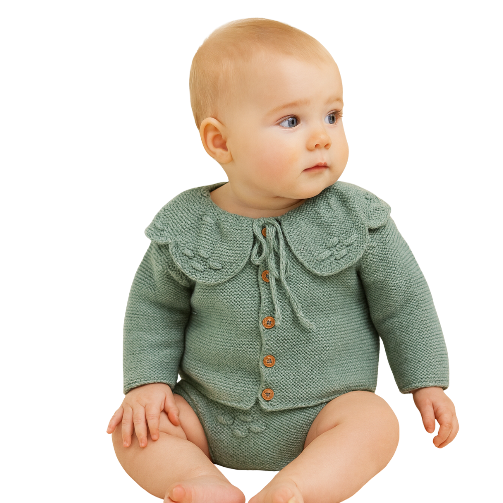 Conjunto em Malha Verde com Casaco de Gola e Tapa-Fraldas