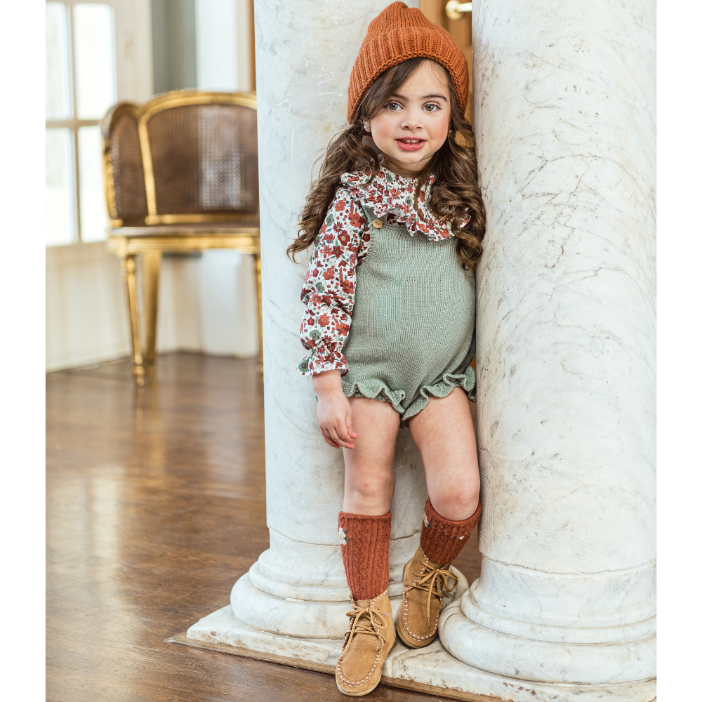 Descrição: Conjunto fofo em malha e top manga comprida em tecido floral. Possui gola franzida com folhos combinando com as mangas, trazendo um estilo clássico, delicado e confortável para o seu bebé.